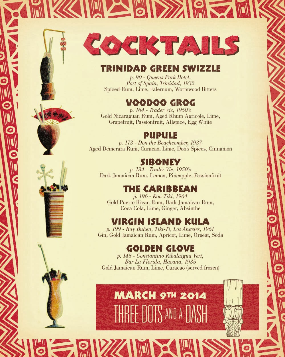 I’ve already written about why you ought to come out to Three Dots and a Dash this Sunday evening. But here’s the convincer: they’ve asked me to DJ! Yes, from 5 till 9ish I’ll be spinning deep cuts from my tiki/calypso/lounge/reggae/ska/Cuban/exotica music collection. And I’ll be doing it beachbum-style. You see, I’ve created a solid four-hour mix, so after I hit “play” I can sip Mr. McGee’s delightful potions and enjoy the mellow atmosphere along with everyone else. Hope to see you there!